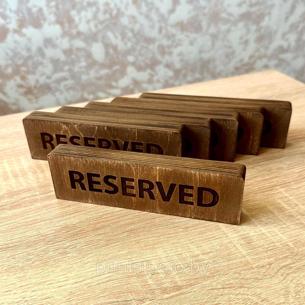 Табличка деревянная "RESERVED" для кафе / бара / ресторана, 160х45х17 мм